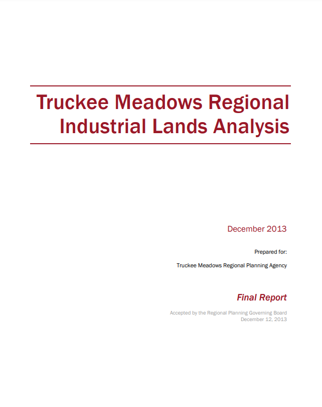 The ILNA is a collaborative effort of the Truckee Meadows Regional Planning Agency (TMRPA), Regional Transportation Commission (RTC), Western Regional Water Commission (WRWC) and Economic Development Authority of Western Nevada (EDAWN), supporting regional economic development efforts aimed at identifying target industries that will bring job growth to Northern Nevada. The vision for economic development in Northern Nevada, including the Truckee Meadows Region, calls for the creation of a vibrant, innovative, and sustainable economy, in part by achieving growth in target industries (e.g., advanced logistics, advanced manufacturing, and clean energy) that need industrial land. This study proactively connects economic development efforts with long-range planning by identifying the characteristics of land (e.g., site size or access to infrastructure) needed by these growth industries, the current supply of industrial land and demand for industrial land over the next 20 years.