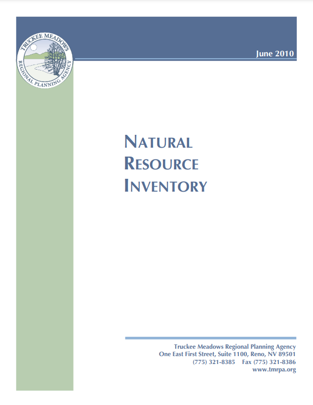 This document contains a collection of links intended to help guide local planners, developers, property owners and the general public in accessing Natural Resource Regulations. Given the multitude and variability in development scenarios, the documents in this inventory are by no means the final authority on directing or permitting any type of development. This document should only serve as a general educational platform on Natural Resource Regulations within Washoe County, NV.
